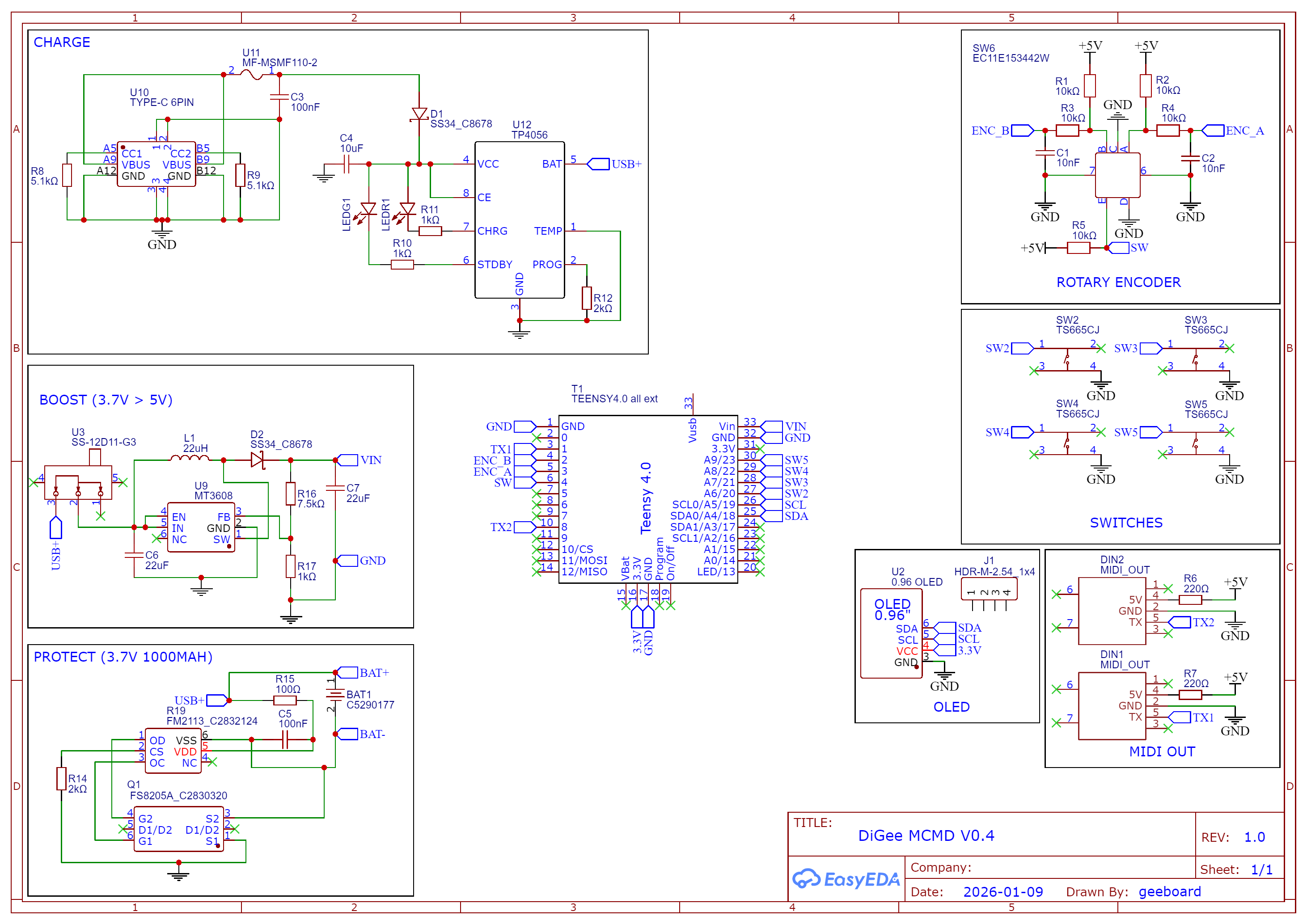 The DiGee MCMD is a portable polyrhythmic midi clock that allows the user to synchronise two independent midi clock signals through a mathematical fraction that can be changed in real-time.